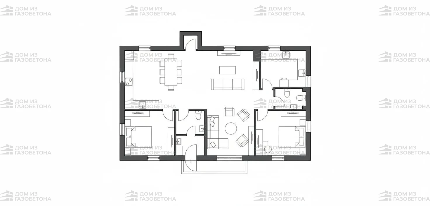 Представляем вашему вниманию проект одноэтажного дома 16 на 16, 164 м2 — это воплощение статуса, комфорта и продуманной эргономики для современной семьи. Квадратная геометрия здания позволяет создать идеальный баланс между всеми функциональными зонами, исключая неэффективные коридоры и тамбуры. Общая площадь в 164 квадратных метра дает нам возможность предложить вам не просто дом, а полноценное жилое пространство, где каждый член семьи найдет свой уголок для уединения и комфортного отдыха. В основе планировки лежит концепция разделения на общественную и приватную зоны. Центром притяжения является огромная кухня-гостиная площадью более 50 м² с панорамным остеклением и выходом на крытую террасу, где можно обустроить зону для барбекю или летнюю столовую. Приватная зона включает четыре изолированные спальни, что позволяет комфортно разместить родителей и нескольких детей, а также выделить помещение под кабинет или гостевую комнату. Два просторных санузла, один из которых примыкает к мастер-спальне, исключают утренние очереди. Продуманная система хранения представлена гардеробной в спальне родителей и отдельной кладовой для хозяйственных нужд. Проект разработан нашей компанией "Дом из газобетона" с учетом всех технологических нюансов строительства из автоклавного газобетона, что гарантирует отличную теплоизоляцию, микроклимат и долговечность конструкции.